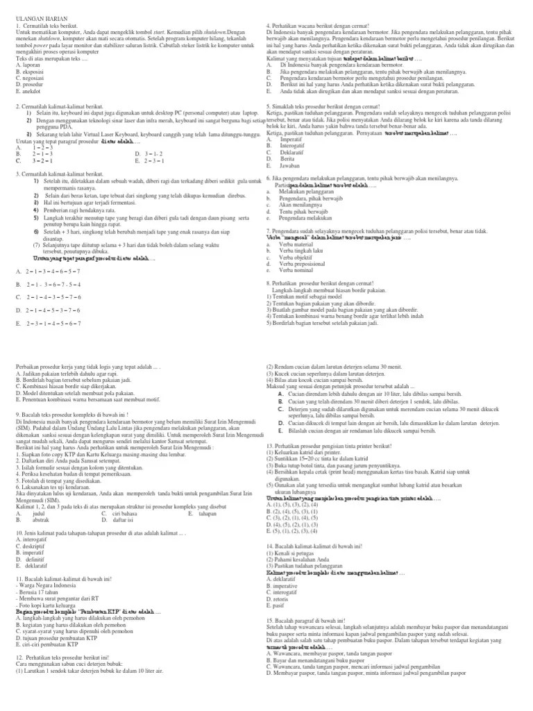 Berita bertujuan untuk menyampaikan informasi yang umumnya bersifat faktual dan terbaru. Silakan mejelajah situs ini dan temukan hal menarik terkait mata pelajaran di sekolah dan lain sabagainya. Berikut ini adalah contoh soal penilaian tengah semester pts kurikulum 2013 dalam kurikulum ktsp disebut dengan ulangan tengah semesteruts mata pelajaran bahasa indonesia kelas 7 vii semester 1 gasal ganjil smpmts. Semoga apa yang admin bagikan kali ini dapat membantu anak didik dalam mencari referensi tentang contoh soal teks prosedur dalam pembelajaran bahasa indonesia. Soal ulangan harian tematik kelas 4 tema 7 subtema 2 ini disajikan berdasarkan kompetensi dasar (kd) yang berlaku pada tema 7 subtema 2. Berikut ini adalah contoh soal pilihan ganda teks prosedur kelas 11/12/7 beserta jawabannya. Contoh soal teks prosedur kelas vii pelajaran bahasa. Itulah yang dapat admin bagikan terkait soal teks prosedur smp kelas 7. 3) mengerat kulit batang sepanjang 10 cm. Soal ulangan harian tematik kelas 5 tema 7 subtema 1 ini juga menjadi salah satu alat untuk melakukan penilaian harian yang wajib diberikan kepada siswa. Berdasarkan teks deskripsi pada soal di atas objek yang. 4) membungkus tanah keratan bagian atas dengan tanah yang subur. File lengkap hubungi whats app 085273216532 bank soal kelas vii bab 1 teks deskripsi ringkasan materi teks deskripsi adalah teks yang berisi penggambaran suatu objek,tempat,atau peristiwa tertentu kepada pembaca secara jelas dan terperinci.